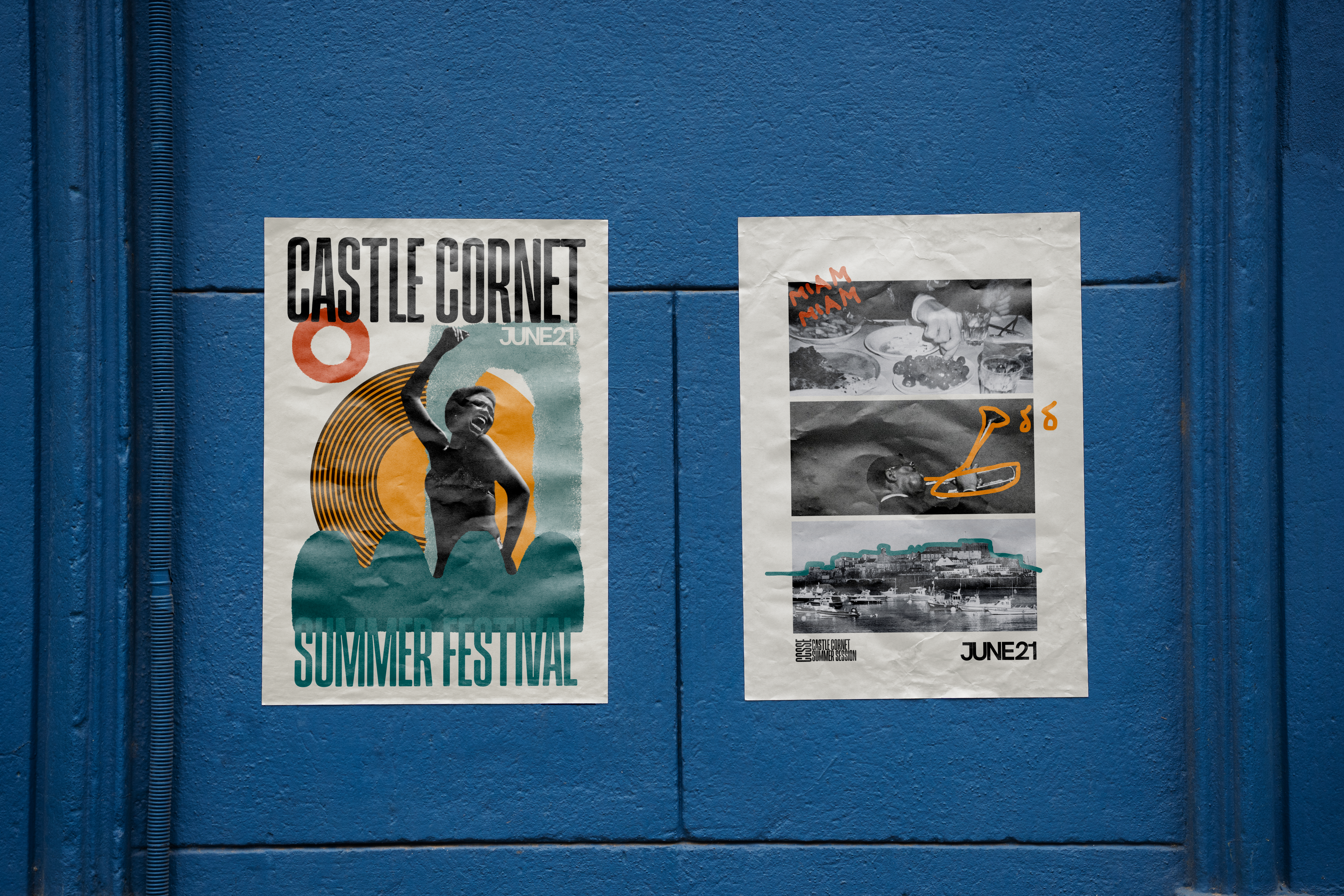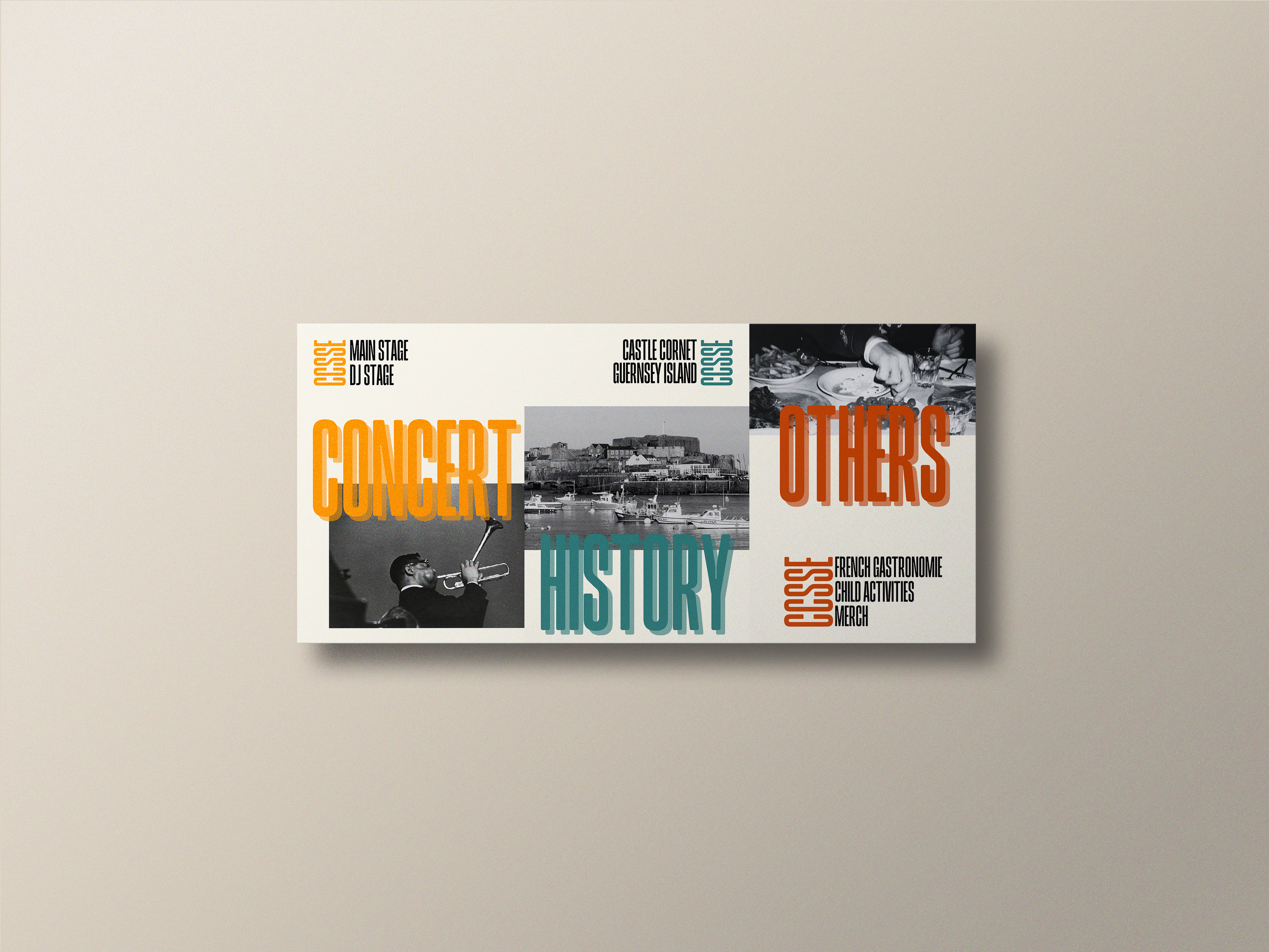 Création de l’identité visuelle complète pour un festival de musique sur l’île de Guernesey : une charte graphique immersive, un flyer et une double affiche conçue comme un diptyque visuel, en écho à l’esprit insulaire et éclectique de l’événement.